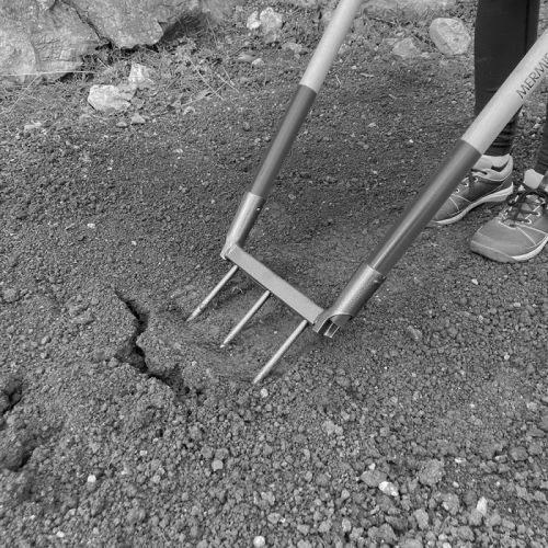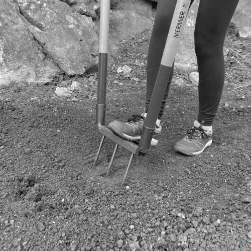 Le bioculteur est un outil qui sert à aérer la terre sans avoir à la retourner afin de ne pas nuire aux micros-organismes présents dans le sol. Il dispose d’un arceau permettant de faciliter la pénétration des dents dans la terre, et aussi de faire levier pour aider au soulèvement de la terre. Il possède également deux manches en bois vernis de 1 m qui sont structurés en V afin de répartir l’effort sur chacun des bras et empêchent l’utilisation du dos.