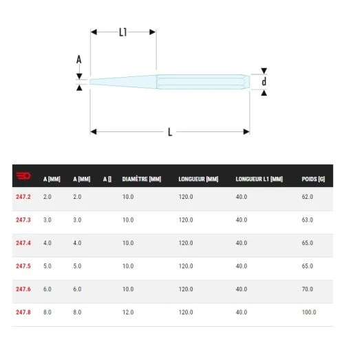 | Diamètre pointe (mm) | 2, 3, 4, 5, 6, 8 |