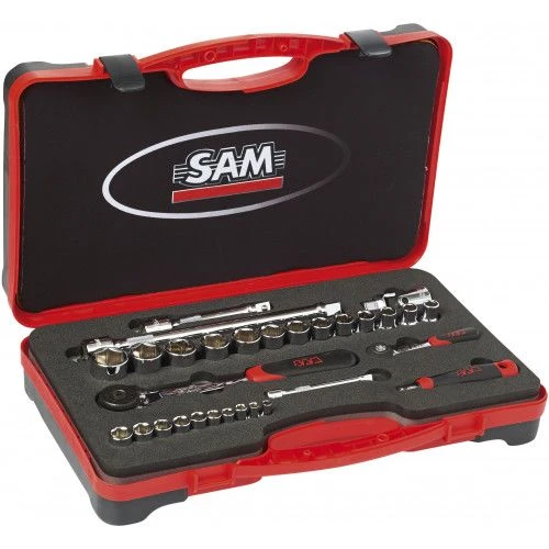 Le coffret de douilles et accessoires de Sam Outillage combine les outils fréquemment utilisés pour une maintenance polyvalente.