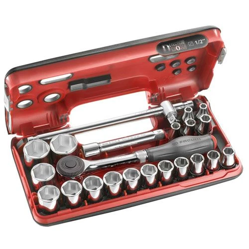 Ce coffret Dbox de douilles 1/2 » en 6 pans métriques S.360DBOX4 est conçu avec des trous pour faciliter l’inventaire instantané du contenu. La pluralité des diamètres des douilles participe au traitement de différents écrous. Le cliquet étanche haute performance permet un serrage rapide et fiable sans aucun effort et sans risque d’abîmer les écrous et boulons. Poignée en T et rallonge pour une opération efficace de l’utilisateur dans sa zone de travail.