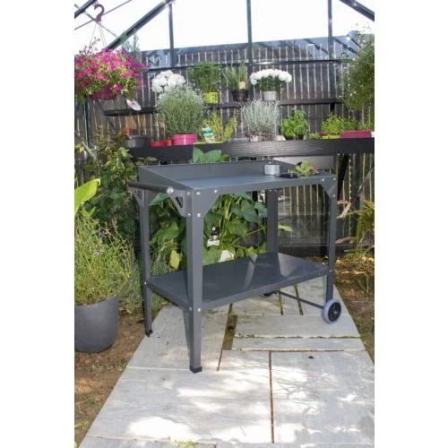 La desserte de jardin CUCINATO est un mobilier pratique pour ceux qui aiment le barbecue ou les fêtes estivales. Il dispose de deux plateaux dont le dessus peut servir de plan de travail pour la préparation des repas ou pour poser une plancha, tandis que la partie inférieure est idéale pour ranger les plats, couverts et ustensiles. Il est équipé d’une poignée latérale et de deux roulettes afin de faciliter le déplacement. Avec sa structure en acier galvanisé, il promet une grande résistance contre les agressions extérieures offrant une longue durée de vie.