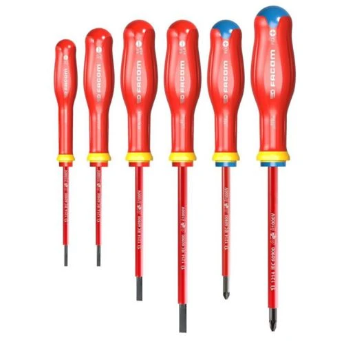 A la fin du cycle de production, les tournevis isolés Protwist® de la marque Facom sont testés individuellement à 10000 V pendant 10 secondes pour une sécurité optimale. De plus, grâce à leurs poignées Soft Grip, ils sont plus confortables et très résistants à la corrosion chimique.