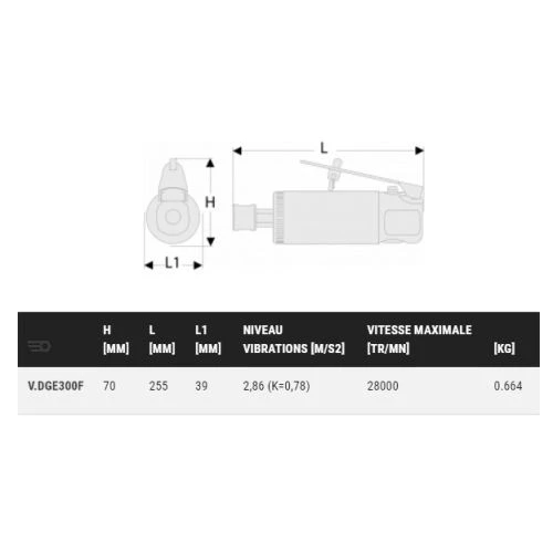 Cette meuleuse droite à pince 6 mm V.DGE300F de Facom bénéficie d’une extension d’arbre donnant accès à des espaces confinés. Elle dispose également d’une poignée surmoulée de caoutchouc »Soft Grip » isolant du froid et des vibrations. Son moteur durable et puissant de 0,3 CV garantit une grande productivité. La meuleuse est équipée d’un échappement d’air déviant les projections de l’utilisateur. Aussi, son silencieux intégré combiné à la possibilité de raccordement à un tuyau d’échappement d’air permettent de réduire le niveau sonore. En outre, elle assure un excellent contrôle grâce à la gâchette progressive permettant de varier la vitesse.