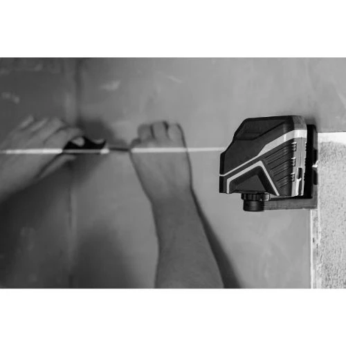 Le niveau laser croix Fatmax FCL-G projette successivement une ligne horizontale et une ligne verticale pour former une croix. En outre, il offre un angle de 150° qui permet un retour de ligne plus important sur le plafond. L’outil dispose également d’un mode pulsé pour une utilisation en extérieur avec une cellule de détection (non incluse). Pour finir, son compensateur peut être bloqué grâce au bouton marche-arrêt.