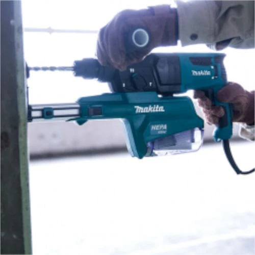 Le perforateur-burineur 800W Makita ASPI HR2651 SDS+ HR2651 est une machine polyvalente qui offre 3 modes de fonctionnement : rotation uniquement, écaillage uniquement et martelage avec rotation. Il est muni d’un extracteur de poussière HEPA qui combine un perçage et un déchiquetage efficaces avec des vibrations réduites et une meilleure extraction de la poussière. Il dispose d’un moteur de 7 A qui délivre une énergie d’impact de 2,9 J pour gérer les applications les plus exigeantes. Enfin, sa poignée ergonomique, sa compacité et sa légèreté offrent un confort accru à l’utilisateur.