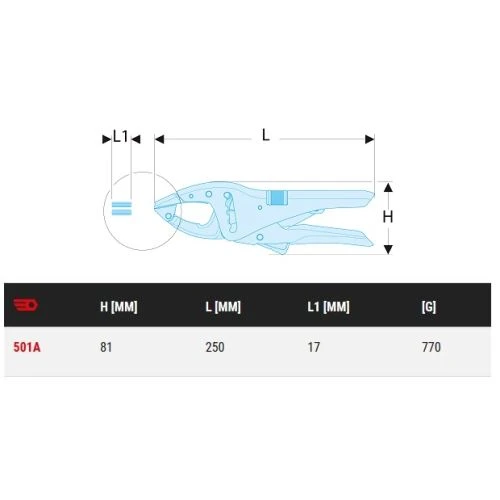 Cette pince-étaux 501A dispose de becs longs pour un serrage optimal dans des espaces restreints. Son bout de bec articulé s’adapte à toutes les configurations de prise possible.