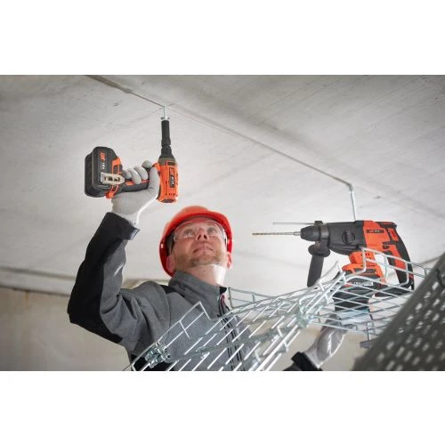 - Pose de vis Tapcon Rod M8 au plafond pour fixer des chemins de câbles ou des conduits de ventilation avec des tiges filetées